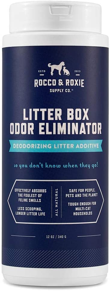 Rocco & Roxie Cat Litter Box Odor Eliminator – Best Natural Litter Deodorizer for Strong Urine Odor – Cat Supplies - Change Cat Box Less Often – Safe for Kitty Boxes - Fresh Scent - 12 oz Bottle